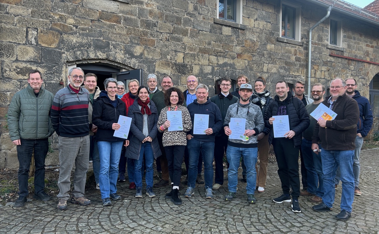 22 ImkerInnen aus der Region haben dieses Angebot wahrgenommen und mit einem Zertifikat die abschließende Prüfung bestanden. Sie kennen jetzt die umfangreichen lebensmittelrechtlichen Bestimmungen, die Vorgaben der Honigverordnung und die strengeren des Deutschen Imkerbunds, die einschlägigen Kennzeichnungspflichten und Hygienevorgaben.